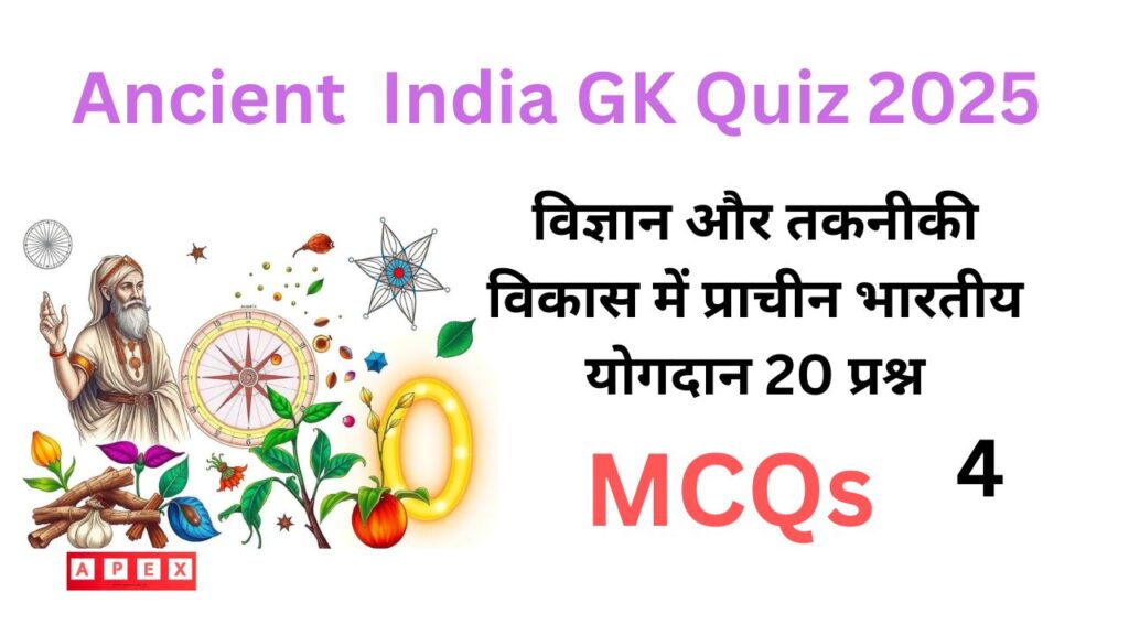 नमस्कार दोस्तों! 😊 आपका हमारे इस लेख में हार्दिक स्वागत है। आज हम आपके लिए प्राचीन भारत से जुड़े 25 महत्वपूर्ण सामान्य ज्ञान प्रश्न लेकर आए हैं, जो प्रतियोगी परीक्षाओं की दृष्टि से बेहद उपयोगी हैं। ये प्रश्न विभिन्न सरकारी परीक्षाओं जैसे UPSC, SSC, रेलवे, बैंकिंग, पुलिस, आदि में अक्सर पूछे जाते हैं। आइए, बिना … Continue reading 20 Surprising Questions on Ancient India’s Contributions to Science & Technology!