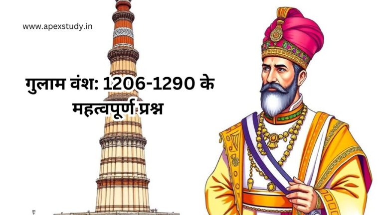 मध्यकालीन भारत: गुलाम वंश (1206-1290) – महत्वपूर्ण प्रश्नोत्तरी परिचय: गुलाम वंश (Slave Dynasty) मध्यकालीन भारत का पहला मुस्लिम राजवंश था, जिसकी स्थापना कुतुबुद्दीन ऐबक ने 1206 में की थी। इस वंश ने लगभग 84 वर्षों तक दिल्ली की सत्ता संभाली और इसके प्रमुख शासकों में कुतुबुद्दीन ऐबक, इल्तुतमिश, रज़िया सुल्तान और गयासुद्दीन बलबन शामिल थे। … Continue reading गुलाम वंश: 1206-1290 के महत्वपूर्ण प्रश्न
